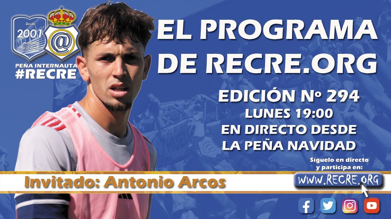 oy a las 19:00 horas contaremos como invitado en la edición nº 294 de El Programa de Recre.org con Antonio Arcos, extremo del Real Club Recreativo de Huelva.