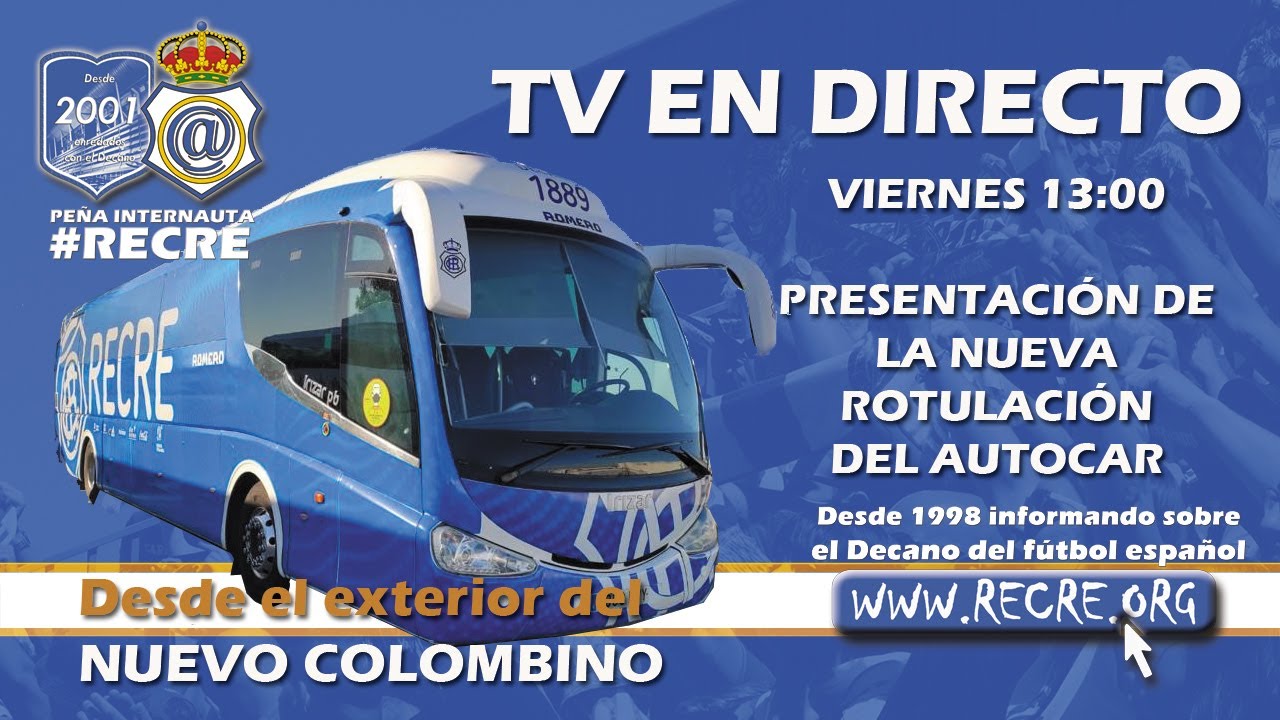 El Recreativo de Huelva ha presentado hoy en el exterior del Nuevo Colombino la nueva rotulación del autocar que la empresa Romero utiliza para los desplazamientos del Decano del fútbol español.