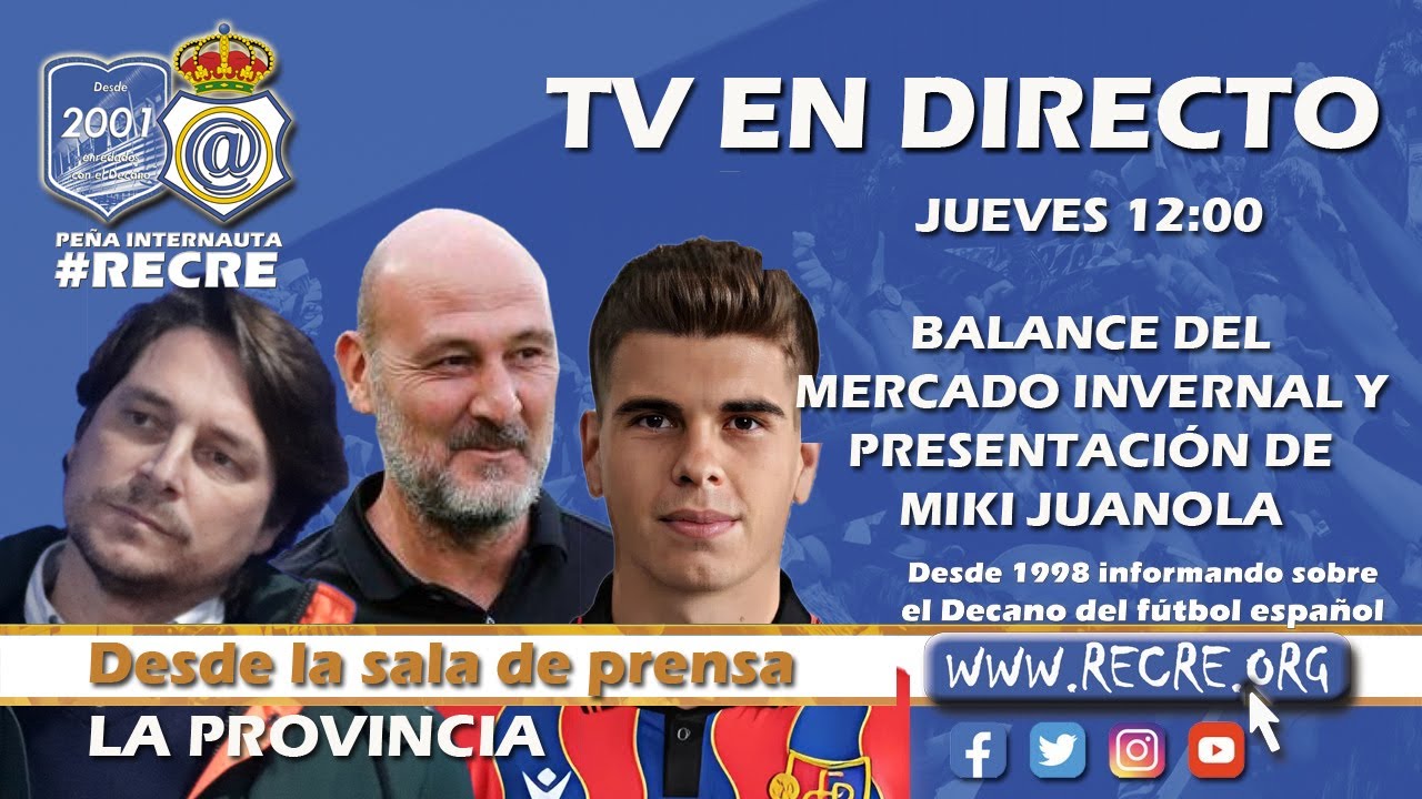 Además, se ha aplazado al jueves a las 12:00 la rueda de prensa prevista para hoy miércoles, en la que se iba a hacer balance del balance del mercado invernal y posteriormente presentar al último fichaje, el lateral diestro Miki Juanola. Desde el Recre se ha hecho un llamamiento a la precaución entre la ciudadanía, ante una situación climatológica complicada, priorizando en todo momento la seguridad.