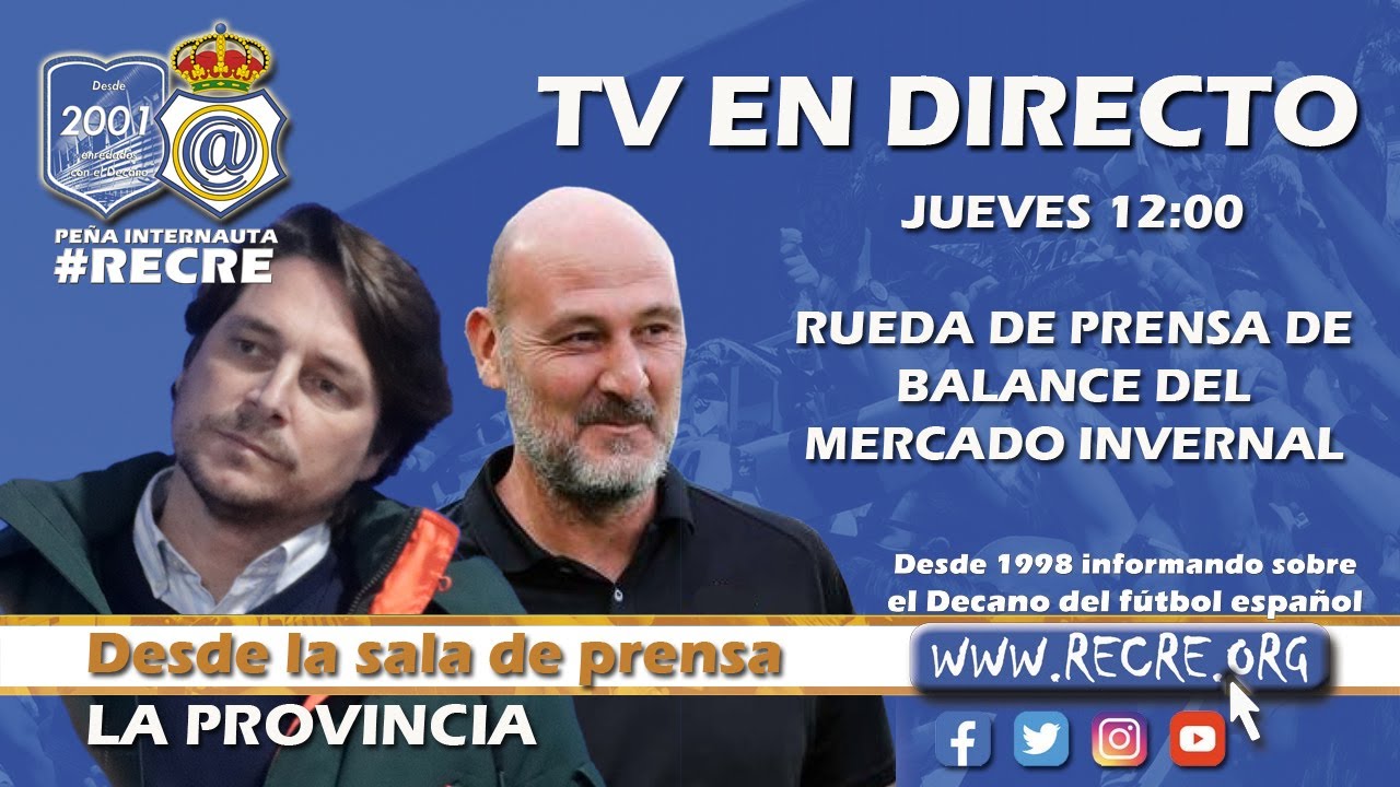 Hoy a las 12:00 horas tendrá lugar con la presencia del presidente, Adrián Fernández, y del director deportivo, Roberto Ríos, la rueda de prensa balance del mercado invernal del Recreativo de Huelva.