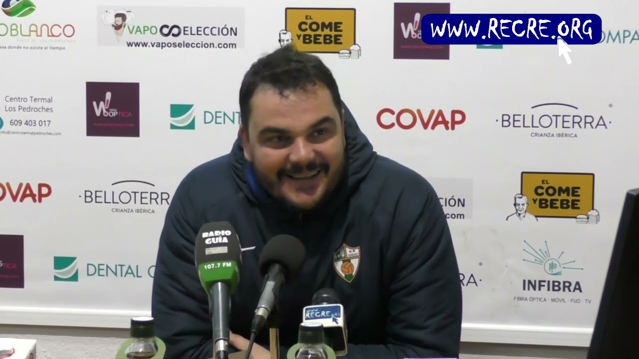 Sobre lo alterado de los jugadores desde el inicio del partido, "es un campo de los menos cómodos y entiendo que el jugador dentro no está cómodo. Es un césped peculiar y el Pozoblanco estaba encima. El Pozoblanco aprieta en su campo como se puede ver en la clasificación y eso ha sido difícil de desprenderse en los primeros minutos. Lo han hecho bastante bien".