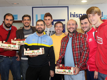 Nutrida representación ayer en la mesa del estudio 2 de Hispanidad Radio, no solo porque tuvimos a cuatro invitados para hablar de la fase final junior disputada este fin de semana en Punta Umbría, sino por el obsequio que nos trajo nuestro compañero Claudio Lorenzo en forma de cajas de fresones de Palos. Tras presentar al técnico de Punta Umbría, Maxi Pedraza, el de PMD Aljaraque, José Pedrote, y dos jugadores de los equipos clasificados para el sector andaluz, Daniel Vizcaíno (C.D. Huelva Baloncesto) y Daniel Abrines (PMD Aljaraque), y darnos mutuamente las "buenas tardes", comenzamos el programa con el análisis de las eliminatorias por el ascenso a EBA.