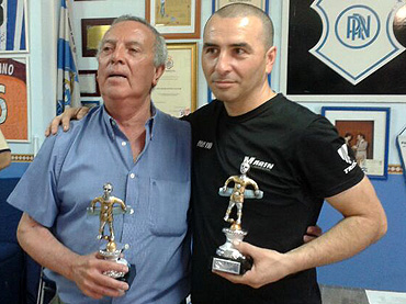 La pareja de la Peña Recreativista Navidad formada por Juan Antonio Marín y Rafael Ruiz se ha proclamado hoy vencedora del II Trofeo de Futbolín de la peña decana. Autor: recre.orgOpina sobre esta noticia