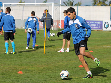 La primera plantilla del Real Club Recreativo de Huelva se entrena hoy sábado por última vez esta semana para preparar el encuentro de mañana ante el Deportivo Guadalajara.