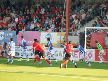 (63') Centro chut desde la derecha de Mujika que saca a córner Cabrero. El oscense despeja como puede el saque