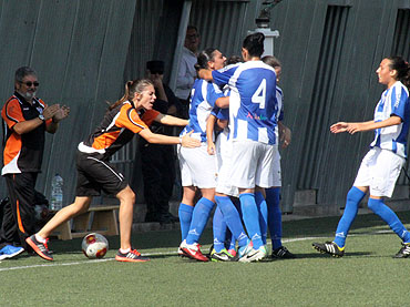 La eslovaca Lucia, hoy titular en la portería, no tuvo trabajo reseñable hasta el minuto 20, con una buena parada. Contestó Cristina Martín Prieto un par de minutos más tarde con un disparo cruzado desde la frontal que se fue rozando el palo. La nota negativa de la primera parte la puso Maite (23'), que tuvo que salir del terreno de juego con una lesión en la mano y sustituida por Ana Serrano.