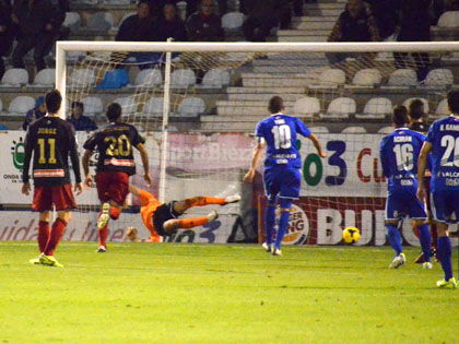 (36') Córcoles saca sobre la línea un balón de Yuri tras error de Dimas. Rechace de Acorán y despeja Cabrero
