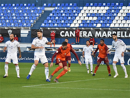 (25') A punto de marcar el Marbella. Disparo cruzado raso de Alfred Planas que se va fuera por muy poco