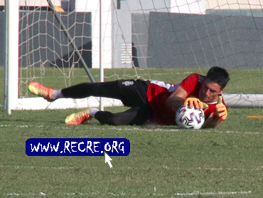 (3') Centro peligroso a Juan Gordón, pero se adelanta David Gil y se hace la pelota por bajo el portero recreativista
