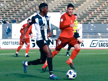 (91') Balón a Koroma, pero sale del área Nauzet, que en dos tiempos evita el disparo del delantero albinegro