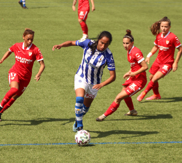 El Sporting Huelva, Ciudad que Marca ha dado otro paso importante hacia la salvación con victoria por 4-2 ante el Sevilla F.C. El equipo onubense avisó con un centro desde la derecha al área de Mayra Ramírez que buscó a Dany Helena, pero bloca Sara Serrat antes de que pudiera conectar el remate la delantera brasileña. Volvió a intentarlo la delantera colombiana por la izquierda, pero tras pisar área la robó la pelota Maite Albarrán (6'). Solo un par de minutos una falta sobre Patri Ojeda cerca de la frontal del área dio origen al 1-0: Dany Helena abrió el marcador al aprovechar un balón que dejó muerto en el área de meta Sara Serrat tras un duro golpeo del libre directo de Yoko Tanaka.