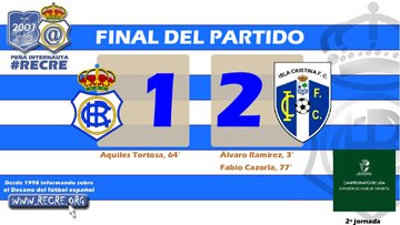RECRE JUVENIL: Marcos Domínguez, Darío Reyes (Manu Vázquez, 46'), Aitor Polo (Alejandro Fernández, 72'), Juan José Sánchez, Carlos Moreno, Francisco José Rodríguez (Francisco López, 72'), Daniel García, Ezequiel Jiménez, Álvaro Alcaide, José Luis Gálvez (Cristian Ávila, 58') y Jesús Candón.